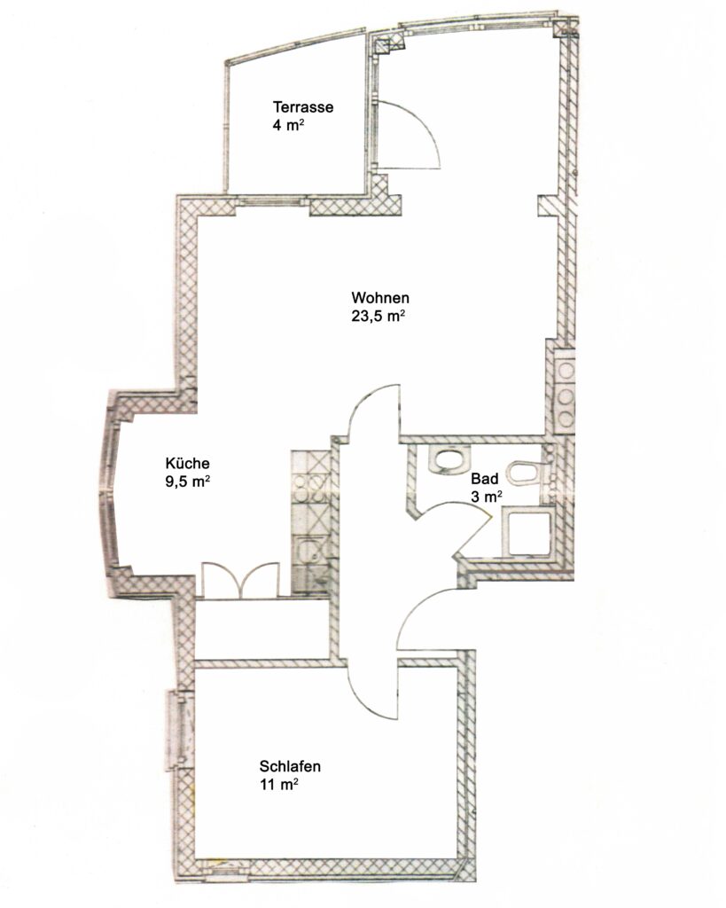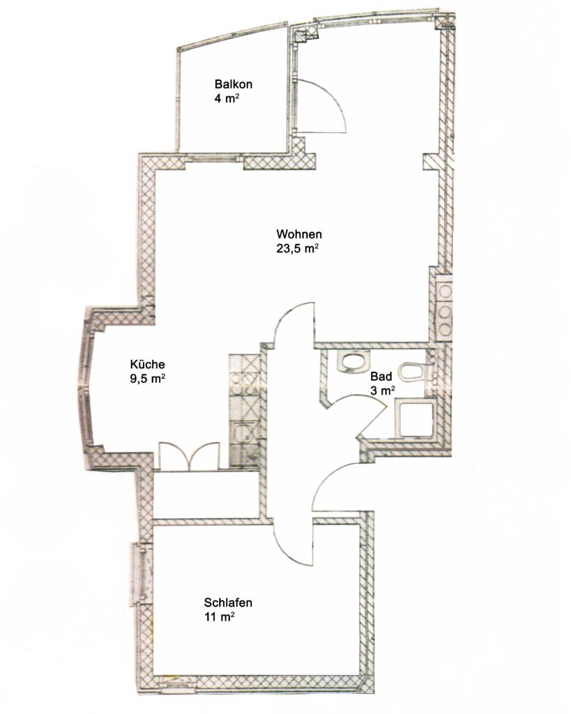 Wohnraum mit Parkettboden ▪ Südbalkon